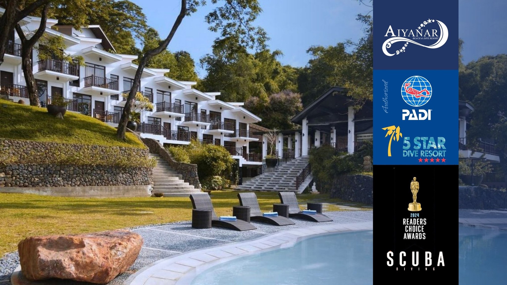 | Intro | WELCOME TO AIYANAR BEACH &DIVE RESORTAiyanar Beach & Dive Resort is a premiere destination for divers and vacationers that strive to make staying ashore as pleasurable as diving itself. Elegantly designed to blend perfectly with its landscape are well-appointed rooms that provide an awe-inspiring sea view, each with its own balcony. Experience a world where luxury and nature collide at THE FINEST DIVE RESORT IN ANILAO. |